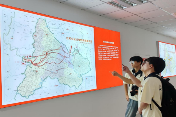实践队以黔西南红色热土为课堂开展革命传统教育。在兴义威舍红军村,队员沿长征步道踏勘,借展览馆史料体悟 “半条被子” 精神蕴含的鱼水深情;在兴义烈士陵园,肃立默哀并研读英烈事迹,通过烈士家书等文物感受革命者初心。转战贵阳后,探访八路军贵阳办事处旧址,从相关实物与史料中,解码各族群众共建抗战物资生命线的历史,将团结精神转化为当代青年的责任担当。
