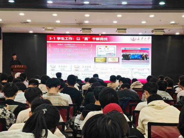 于4月14日在长安文化艺术中心三楼多功能厅开展“爱国奋斗勇担当·榜样引领共成长”长大之星进院系宣讲活动。活动由2025级辅导员朱禹诚主持。