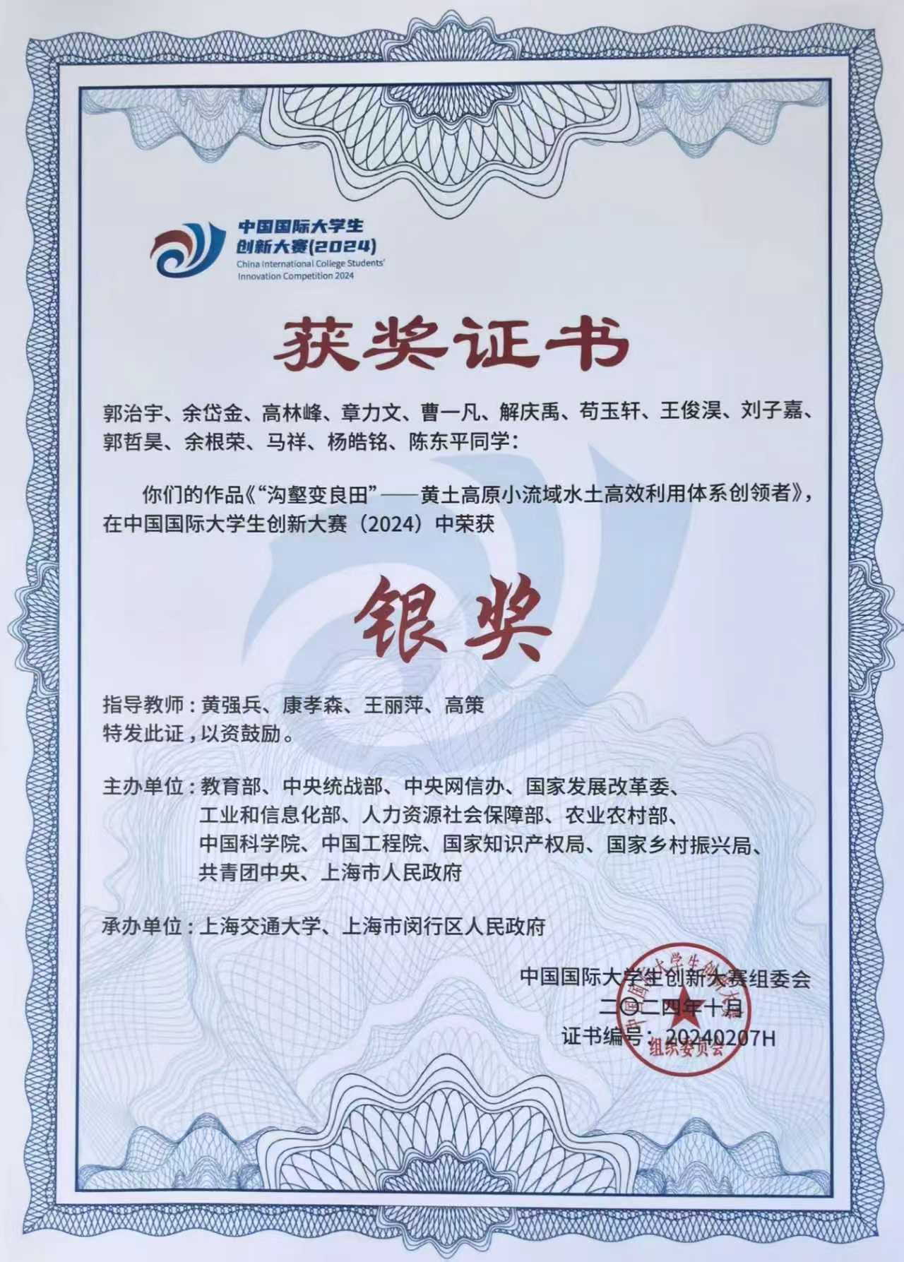 地质工程系学生团队凭借《沟壑变良田—黄土高原小流域水土高效利用体系》项目,经过激烈角逐,从全球514万个项目中夺得国家级银奖。本届大赛共吸引2083.6万人次报名,覆盖153个国家和地区的5406所学校,是我国级别最高、覆盖面最广、影响力最大的大学生创新竞赛。该项目团队成员由郭治宇(项目负责人)、余岱金、高林峰、章力文、曹一凡、解庆禹、苟玉轩、王俊淏、刘子嘉、郭哲昊、余根荣、马祥、杨皓铭、陈东平等14位同学组成,指导教师为黄强兵教授、康孝森副教授、王丽萍和高策老师。该团队作为本届大赛中人兽性交