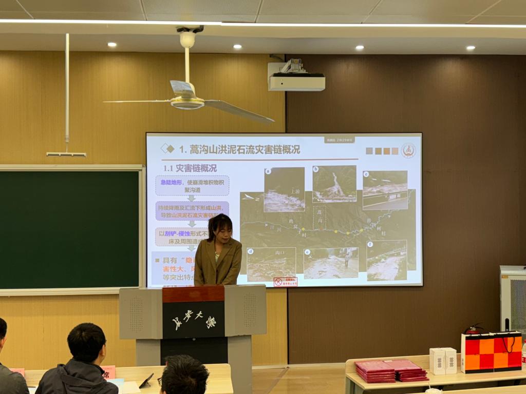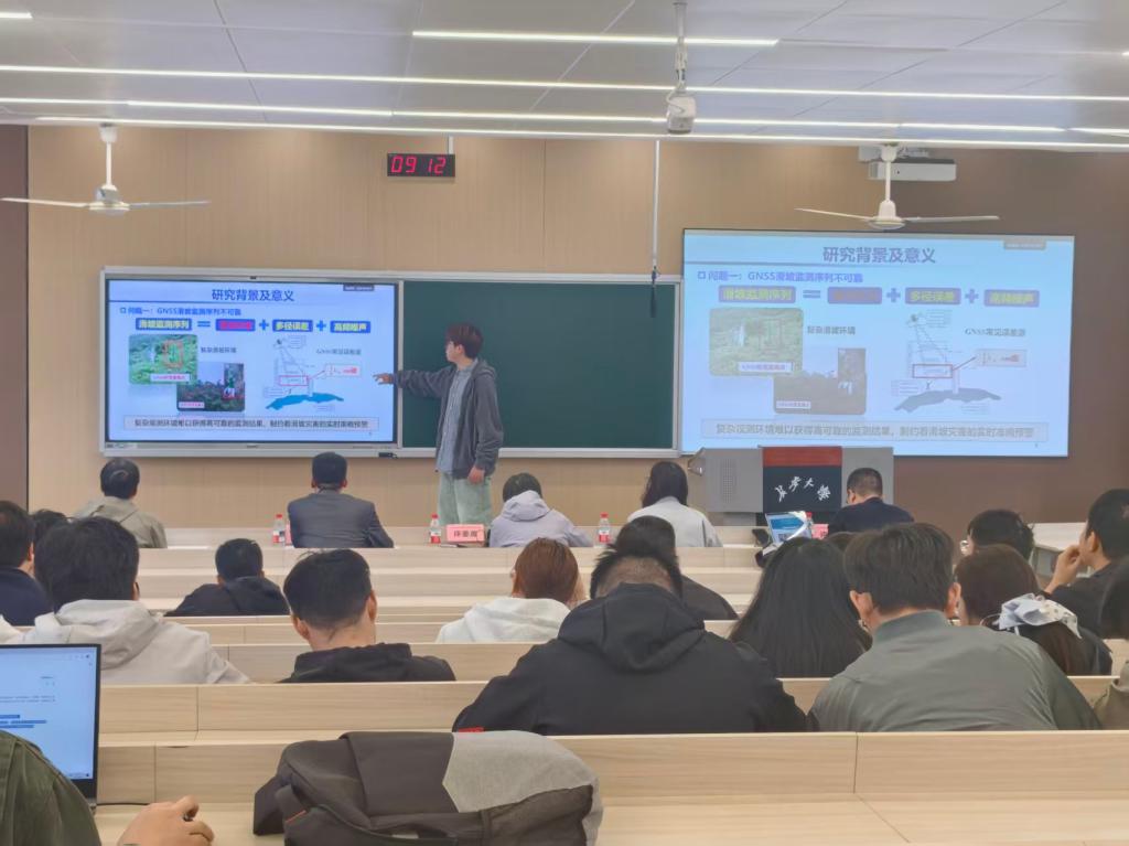 汇报中,研究生们分别从地质灾害评价、智慧安全、大地测量、摄影测量与遥感、深部地球物理勘探、人工智能在地学探测中的应用、流域地质环境演化、生态修复技术、AI交叉学科创新应用等方面展开汇报,充分展现了人兽性交
