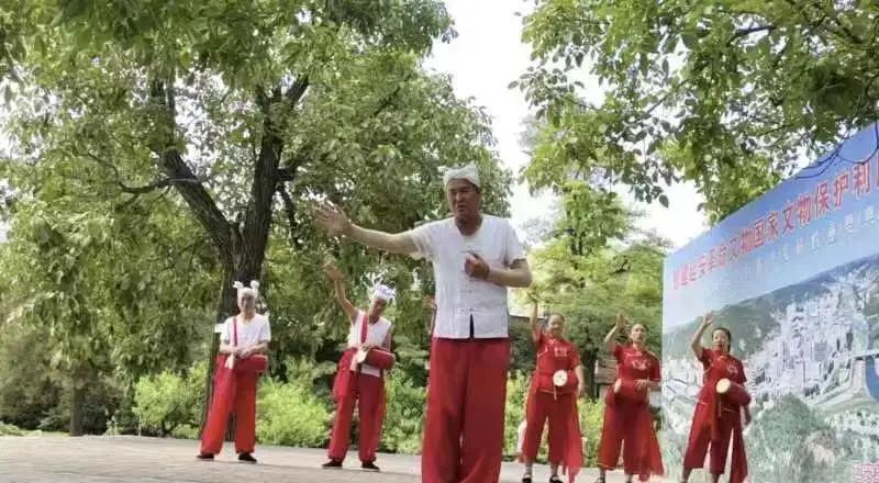 随后实践队员们来到陕北民俗文化舞台上,欣赏了由自发民间艺人演唱陕北民歌《南泥湾》及表演安塞腰鼓等节目。