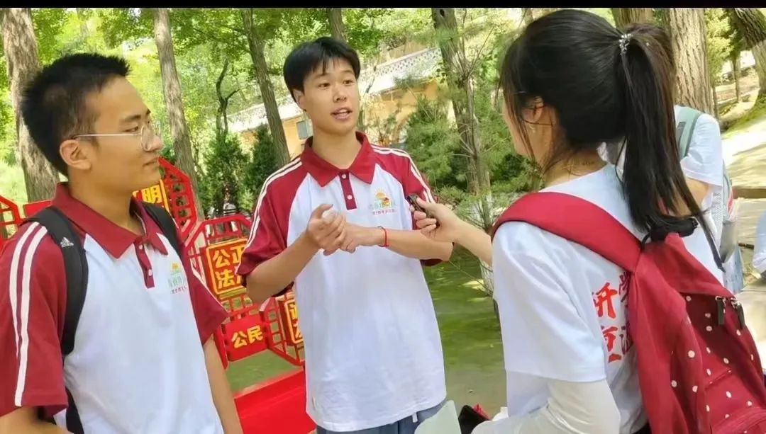 图为实践队员采访游客