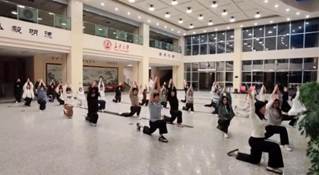 特邀校队同学提供专业指导,结合瑜伽动作要领、呼吸节奏与肢体协调要求定制训练计划,从基础体式规范到组合流畅度、队形整齐度逐一细致讲解纠正。训练期间,采取线上线下结合的模式,线下集中练习整套瑜伽组合、统一节奏与站位,线上每日打卡并通过视频反馈打磨细节,在专业指导下,队员们从动作生疏、节奏不一逐步变得舒展规范、整齐优美,团队的凝聚力与专业性在训练中不断提升。